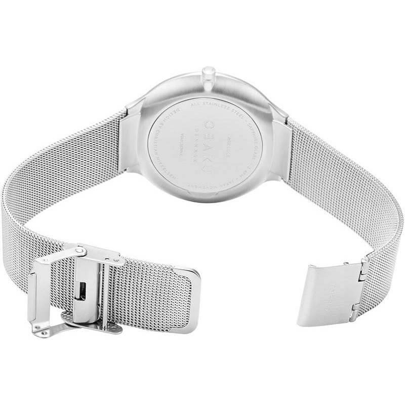 Ремешок: Стильный браслет из нержавеющей стали, выполненный в технике миланского плетения, подчеркивает утонченность дизайна и обеспечивает надежную фиксацию на руке благодаря удобной раскладной застежке. Застежка с системой блокировки.