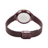Корпус: Корпус выполнен из стали с IP покрытием. Сапфировое стекло повышенной прочности. Коричневого цвета циферблат с золотистыми стрелками и часовыми индексами. Диаметр: 32 мм. Водонепроницаемость: 30 метров.