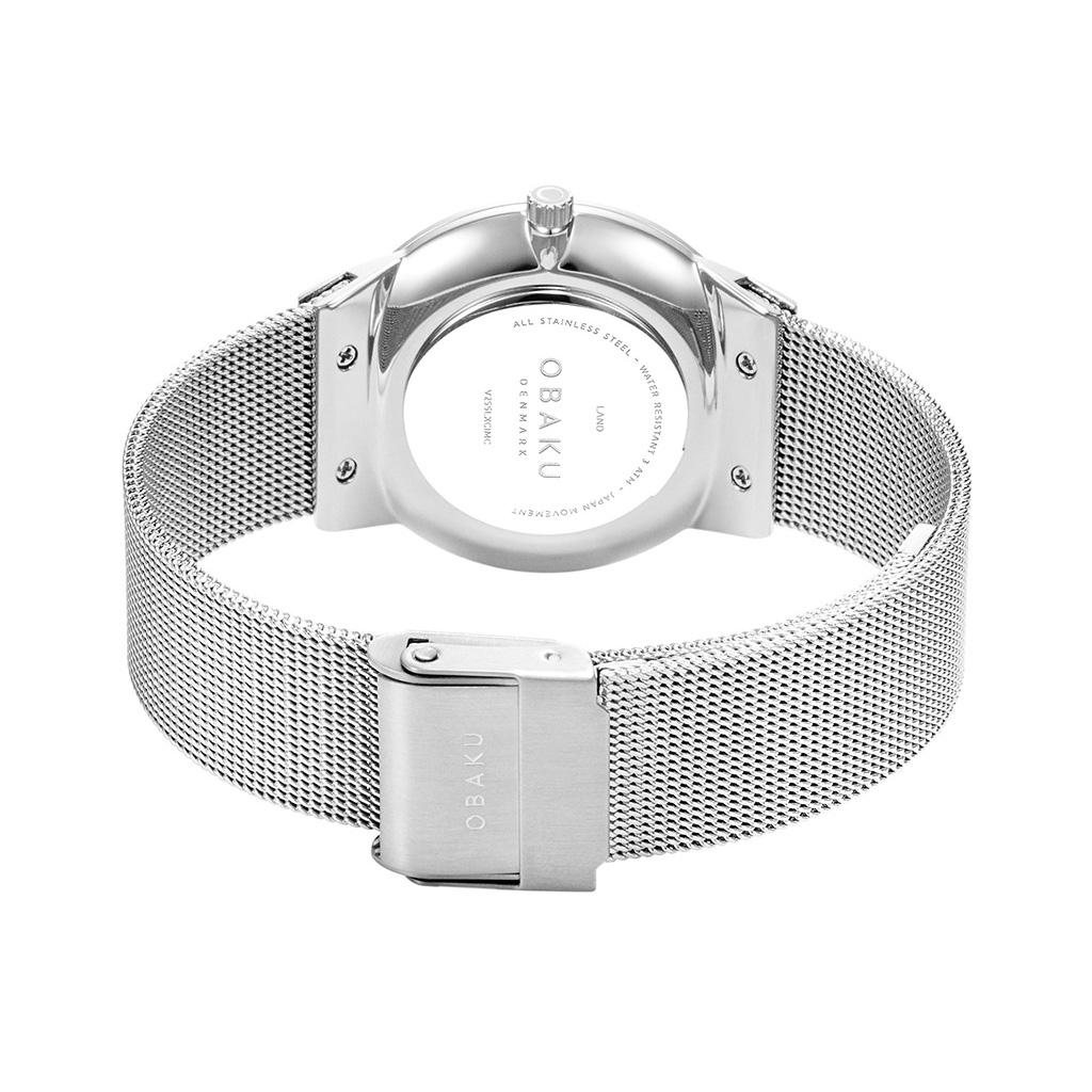 Ремешок: Стильный браслет из нержавеющей стали, выполненный в технике миланского плетения, подчеркивает утонченность дизайна и обеспечивает надежную фиксацию на руке благодаря удобной раскладной застежке. Застежка с системой блокировки.