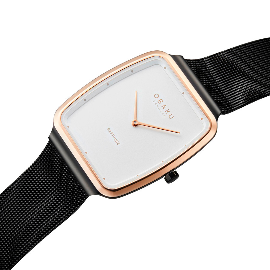 Ремешок: Стальной браслет с чёрным IP покрытием выполнен в технике миланского плетения, раскладная застежка с системой блокировки.