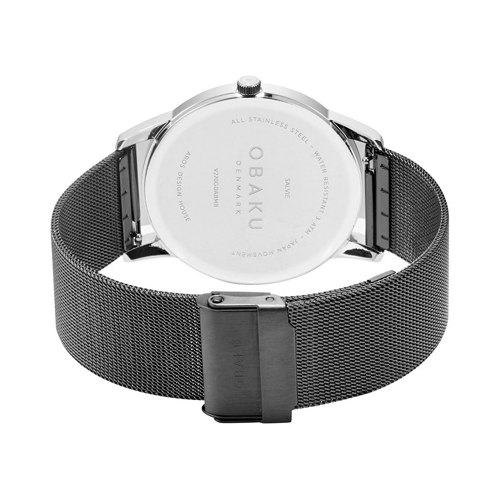 Ремешок: Стальной браслет с черным покрытием выполнен в технике миланского плетения, раскладная застежка с системой блокировки.