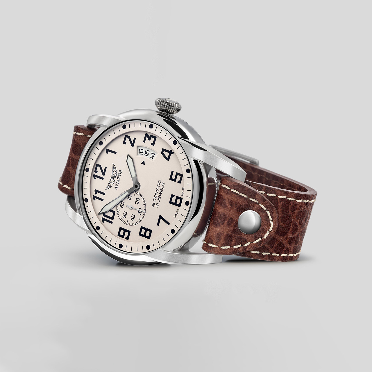 Функции: Индикация часов и минут при помощи центральных стрелок. Секундная стрелка вынесена на отдельный циферблат. Дата.