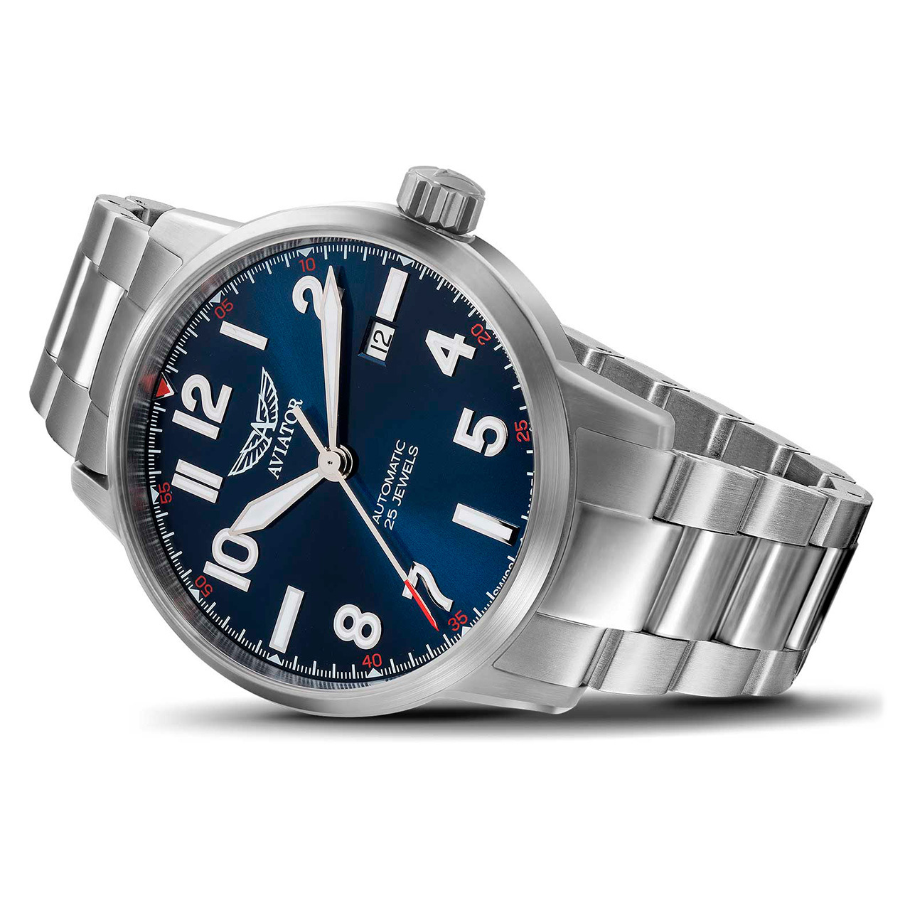 Корпус: Корпус круглой формы выполнен из матовой нержавеющей стали марки 316L. Циферблат синего цвета с шлифовкой “солнечные лучи”. Аппликация часовых индексов и печатная разметка в стиле авиационных приборов. Стрелки и часовые метки имеют светящееся в темноте люминесцентное покрытие SuperLuminova. Сапфировое стекло с двусторонним антибликовым покрытием имеет повышенную устойчивость к возникновению царапин. Переводная коронка с двойным уплотнителем для дополнительной защиты. Задняя крышка украшена гравировкой самолета. Диаметр 42 мм. Водозащита 100 метров.