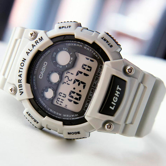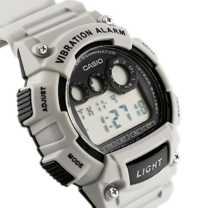 Функции: Электронный (цифровой) способ отображения времени. Циферблат подсвечивается светодиодом разных цветов. Секундомер с точностью показаний 1/100с и временем измерения 24ч. Сплит-хронограф. Таймер обратного отсчета от 1с до 24ч. Второй часовой пояс. 12-ти и 24-х часовой формат времени. Функция включения/отключения звука. Будильник, ежечасный сигнал. Световая и вибрационная индикация сигнала.