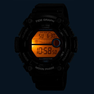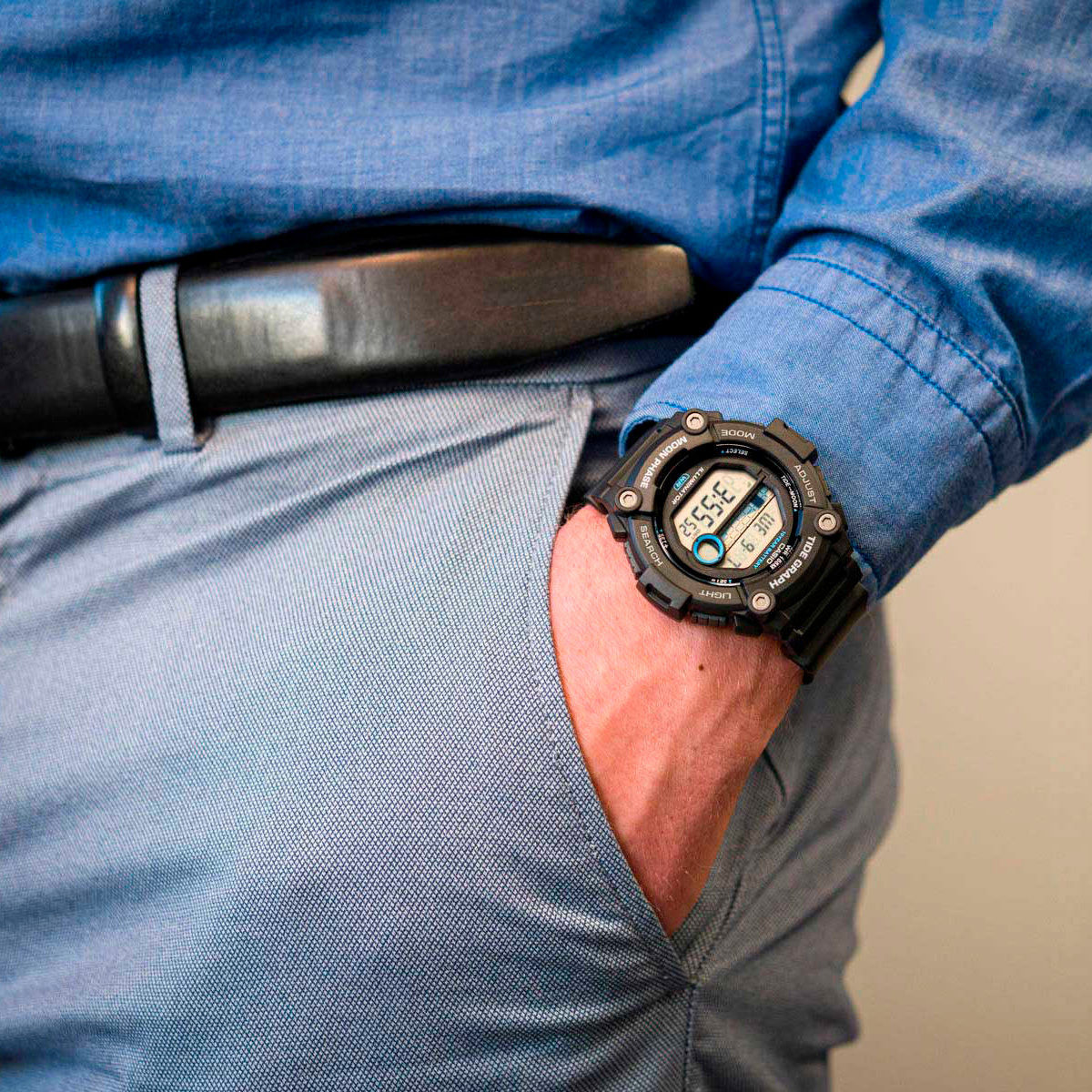 Корпус: Корпус выполнен из полимерного материала, который является идеальным компаньоном каждого дня, прочный и лёгкий. ЖК дисплей чёрного цвета. Акриловое стекло. Стальная задняя крышка крепится на 4-х винтах. Циферблат подсвечивается светодиодом. Настраиваемое послесвечение 1,5 или 3сек. Цвет подсветки: оранжевый. Габариты 51,1мм x 51,3мм x 14,8мм, вес 49г. Водонепроницаемость 100 м.
