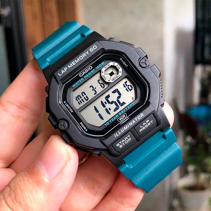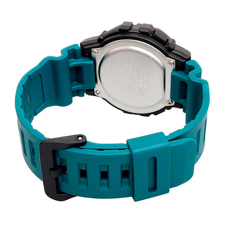 Корпус: Корпус из полимерного материала чёрного цвета. Циферблат серого цвета вокруг дисплея. Дисплей серого цвета, цифры чёрного. Акриловое стекло. Габаритные размеры: 44,5х47,2мм, толщина 13,4мм, вес 43г. Водозащита: 100 м.