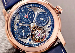 Frederique Constant выпускает одно уникальное издание своих успешных часов Tourbillon Perpetual Calendar Manufacture из 18-каратного розового золота с синим оттенком метеоритного скелета на циферблате с сердцебиением. Владельцу часов открывается взор на сложную механику часов.