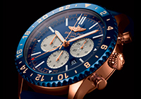 «Хронограф капитана самолета» – Chronoliner B04 – взмывает ввысь в новой эксклюзивной версии, выпущенной ограниченным тиражом в 250 экземпляров. Авиационный хронограф с привлекающим внимание циферблатом насыщенного синего оттенка и элементами из 18-каратного золота, керамический безель аналогичного цвета глубокой синевы, мануфактурный калибр Breitling B04 с функциональной системой двух часовых поясов – яркая новинка от швейцарской марки Breitling.