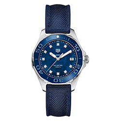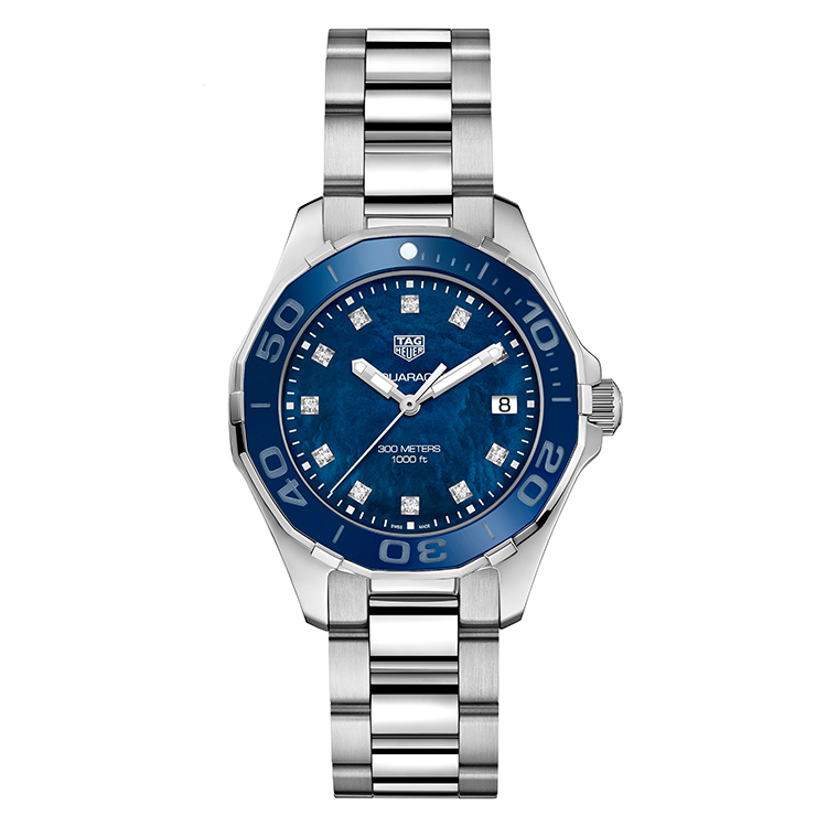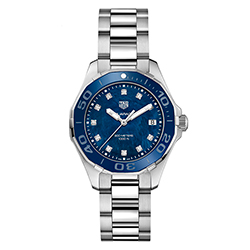 Новая женская модель от мануфактуры TAG Heuer в ярко выраженном спортивном и вместе с тем элегантном дизайне как нельзя лучше соответствует образу активных современных женщин. Диаметр корпуса 35 мм, водонепроницаемость до 300 метров. Часы Aquaracer из коллекции 2003 года постоянно эволюционируют, приобретая всё более спортивный характер. Вместе с тем сохраняют культовые элементы – такие как керамический, вращающийся в одном направлении безель с 12 фацетами и 6 полированными упорами.
