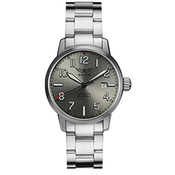 | 2. Модель V.3.21.0.137.5: корпус с серым оттенком; серебристый циферблат; белые цифры, индексы и стрелки часов и минут с чёрной окантовкой, чёрная секундная стрелка с красным наконечником; стальной браслет. | |