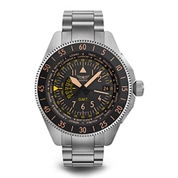 Вдохновленные таким обаянием первопроходца, часы Aviator Airacobra Airacobra Auto GMT искусно сочетают в себе стиль и эргономику. Их дизайн, отражающий в себе аэродинамические формы самолета и крыльев через форму лапок, не только напоминает нам самолет, но и гарантирует прекрасное и эргономичное прилегание к руке. Одновременно, циферблат, похожий на инструмент из кабины пилота, гарантирует оптимальную видимость и легкую читаемость различных показателей времени.