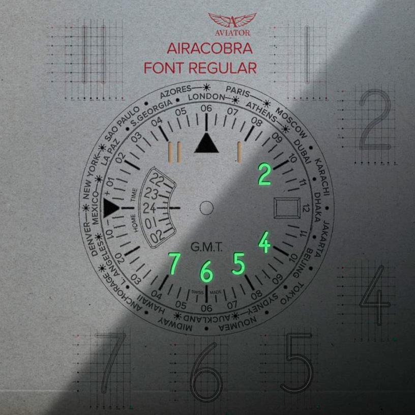 В сфере авиации шрифт, нанесенный на инструментах, имел первостепенную важность: четкость и наглядность - ключевые факторы. В подтверждение этому на приборах истребителя использовался светящийся шрифт. Опираясь на эту историческую деталь, в модели использовался точно такой – же шрифт, унаследовав, таким образом, чёткость и легкость восприятия.