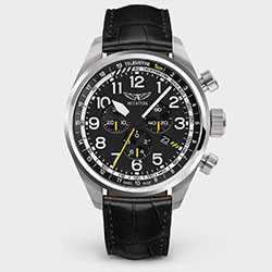 Успех пехотных операций во время Второй мировой войны стал возможен благодаря поддержке войск «Аэрокобры» с неба. Точно как этот истребитель сыграл важную роль для пилотов и для миссии, так и часы AVIATOR Airacobra P45 Chrono обеспечивают такую же безупречную надежность с инструментальным видом, вдохновленным этим почетным героем войны. Часы AVIATOR Airacobra P45 Chrono, изготовленные из высококачественных материалов, сочетают в себе военную точность и классический внешний вид. Высококонтрастные стрелки и цифры свидетельствуют о классическом кокпите, которые сочетаются с неподвластным времени корпусом и роскошным ремешком в стиле аллигатора. Это союз непоколебимой надежности и страсти к увековечиванию истории авиации, который заключен в каждом авиационном часе.