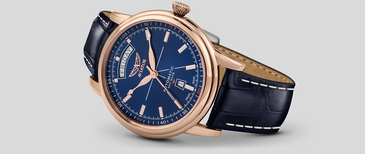 AVIATOR Douglas Day Date отличается отделкой «Солнечные лучи», элегантно изогнутым окошком, указывающим день, и окошком календаря в форме трапеции. Видимость и читабельность являются ключевыми атрибутами коллекции Douglas Day Date. Они объединяет дизайн и функциональность в стиле ар–деко: от полированных металлических индексов до декоративных тонких акцентов на стрелках. Эти часы, несомненно, неподвластны времени своей утонченностью.