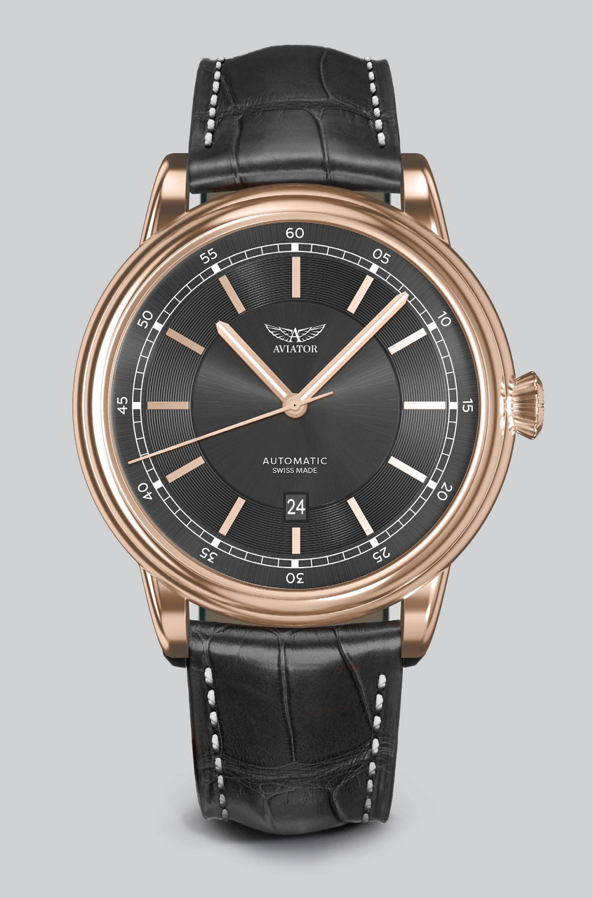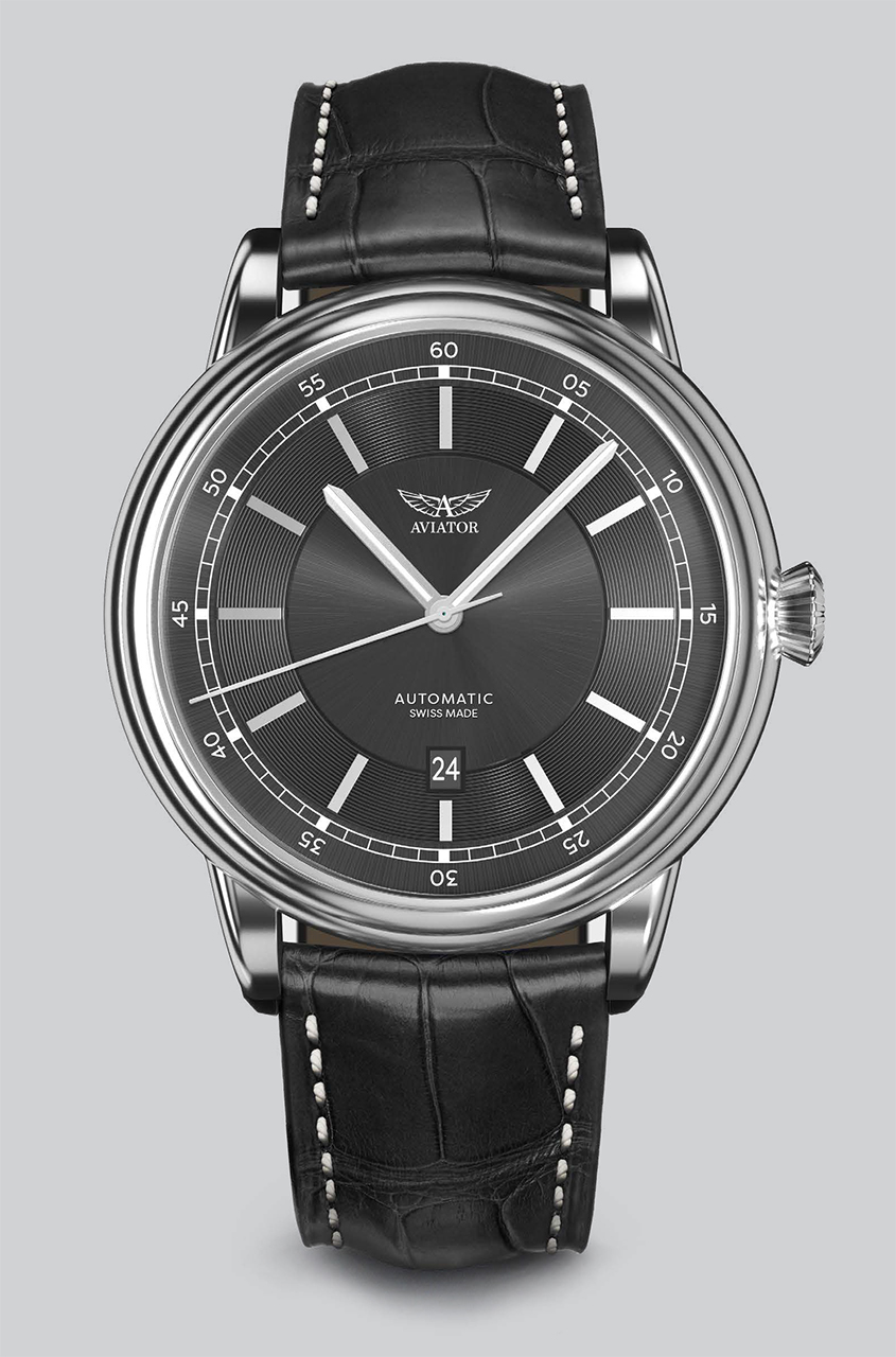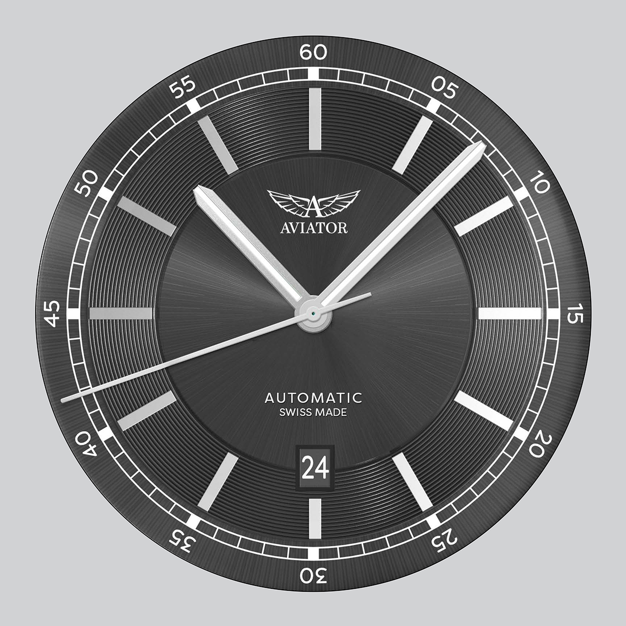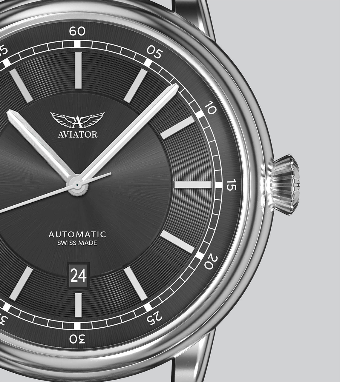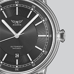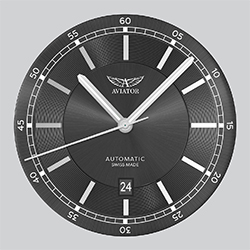Корпус состоит из трех эквивалентных частей: ободка, корпусного кольца и задней крышки корпуса. Ручная обработка при помощи изящных часовых технологий, закругленные формы – все это напоминает лоснящуюся элегантность фюзеляжа самолета Douglas. Его великолепная зеркальная полировка прекрасно сочетается с эргономичными обтекаемыми линиями. А изогнутые лапки корпуса – образец элегантности прошлых лет – гарантированно хорошо лежат по руке любого размера. Как и для всех часов AVIATOR, требуется сделать более 40 операций, чтобы произвести корпус, отвечающий высоким требованиям.