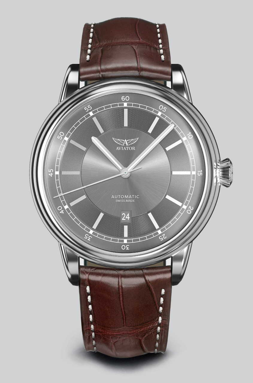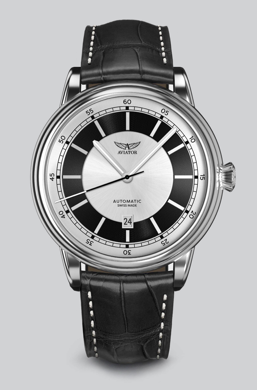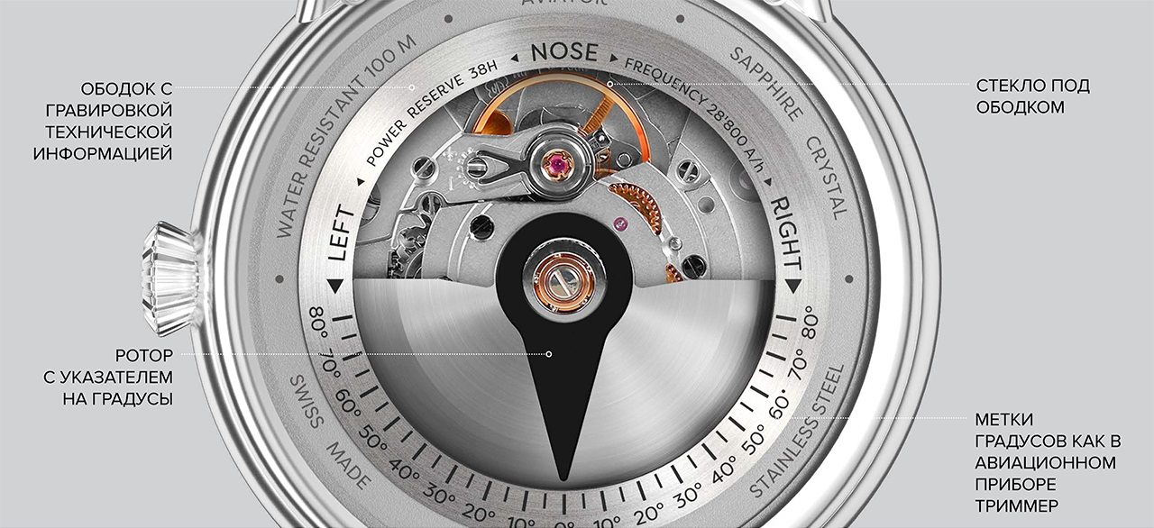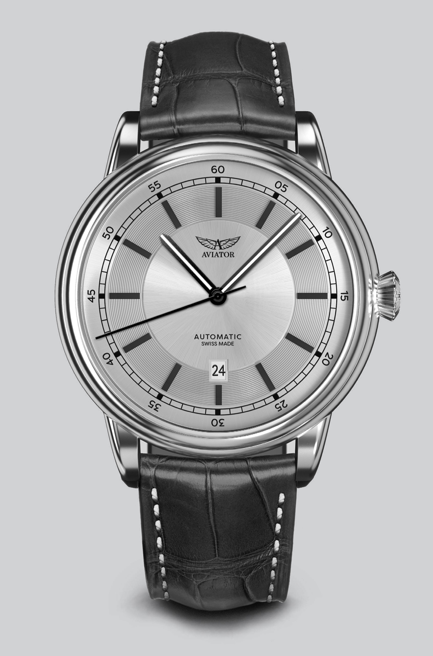 Корпус состоит из трех эквивалентных частей: ободка, корпусного кольца и задней крышки корпуса. Ручная обработка при помощи изящных часовых технологий, закругленные формы – все это напоминает лоснящуюся элегантность фюзеляжа самолета Douglas. Его великолепная зеркальная полировка прекрасно сочетается с эргономичными обтекаемыми линиями. А изогнутые лапки корпуса – образец элегантности прошлых лет – гарантированно хорошо лежат по руке любого размера. Как и для всех часов AVIATOR, требуется сделать более 40 операций, чтобы произвести корпус, отвечающий высоким требованиям.
