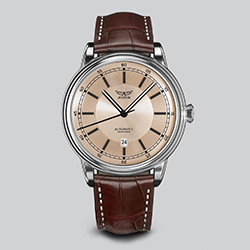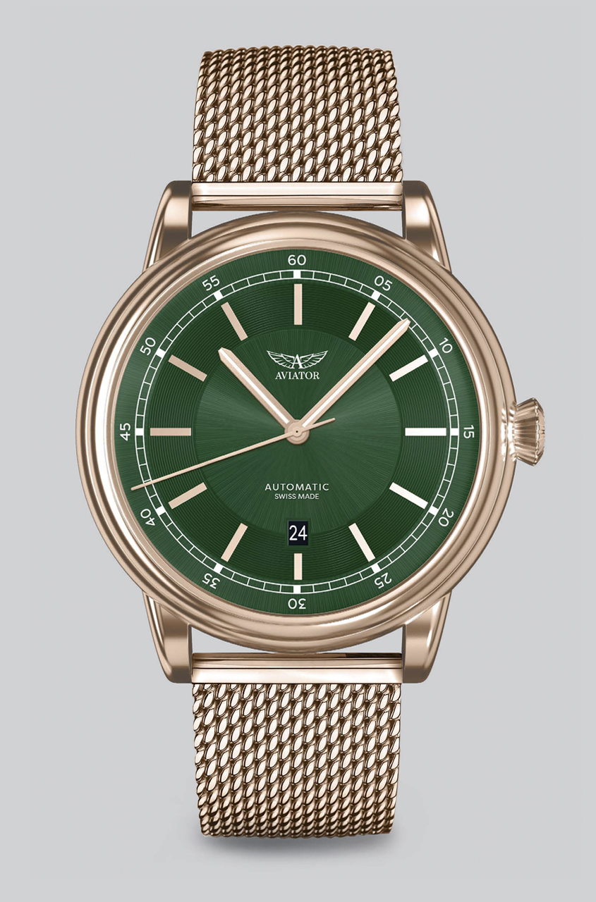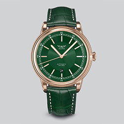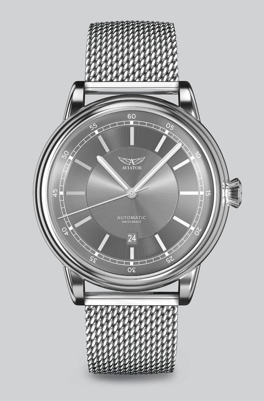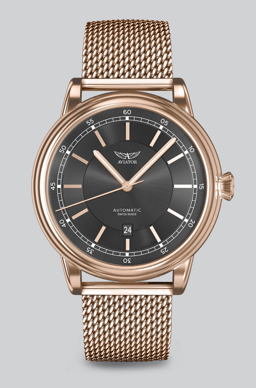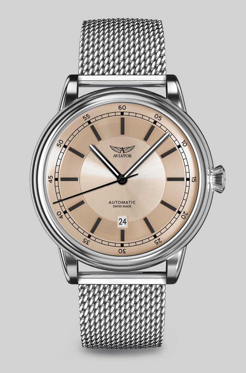 Корпус состоит из трех эквивалентных частей: ободка, корпусного кольца и задней крышки корпуса. Ручная обработка при помощи изящных часовых технологий, закругленные формы – все это напоминает лоснящуюся элегантность фюзеляжа самолета Douglas. Его великолепная зеркальная полировка прекрасно сочетается с эргономичными обтекаемыми линиями. А изогнутые лапки корпуса – образец элегантности прошлых лет – гарантированно хорошо лежат по руке любого размера. Как и для всех часов AVIATOR, требуется сделать более 40 операций, чтобы произвести корпус, отвечающий высоким требованиям.