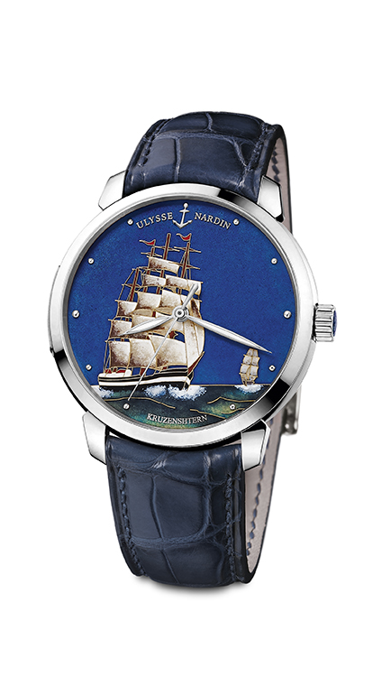 Мануфактура Ulysse Nardin, как мне показалось, все еще живет наработками Ральфа Шнайдера и остается верна себе: в моделях 2015 года отразилась любимая брендом морская тематика. В коллекции, выполненных в технике перегородчатой эмали, появился новый образ, вдохновением для которого послужил легендарный «Крузенштерн».