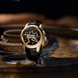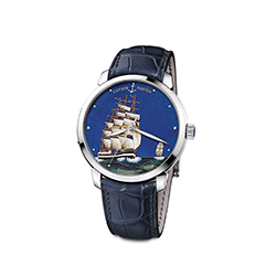 На циферблате новинки знаменитое судно изображено на фоне морского пейзажа. Еще одни сложные часы Hannibal посвящены легендарному переходу Ганнибала через Альпы на слонах.
