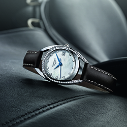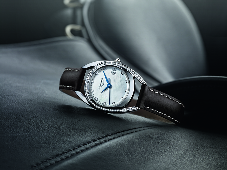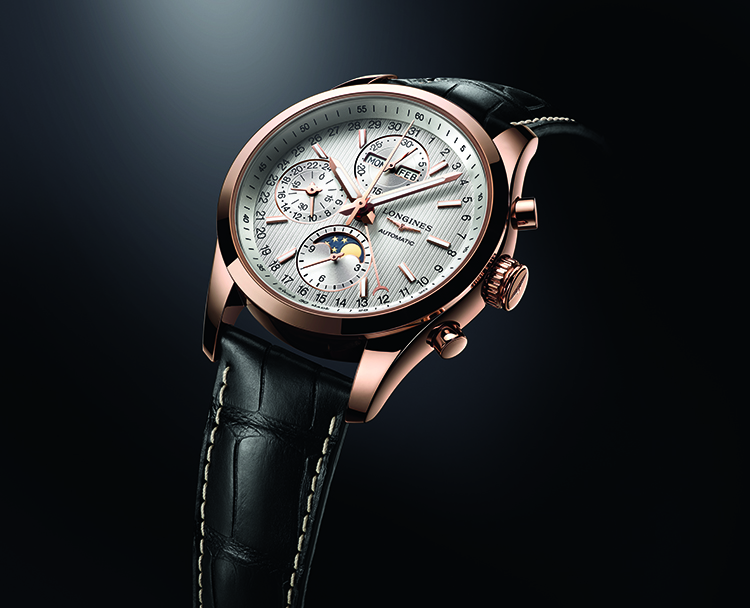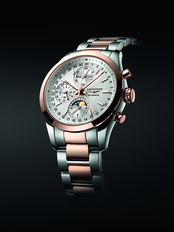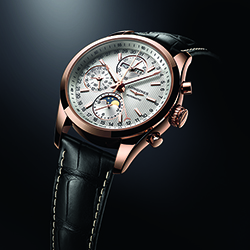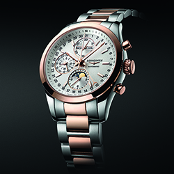 Лошадка, гарцующая на подиуме корнера Longines, напоминала посетителям о присутствии бренда в самых престижных событиях конно-спортивного мира. Эта тема и стала ключевой в коллекции. Из классики я бы выделила хронограф Conquest Classic MoonPhase с лунным календарем.