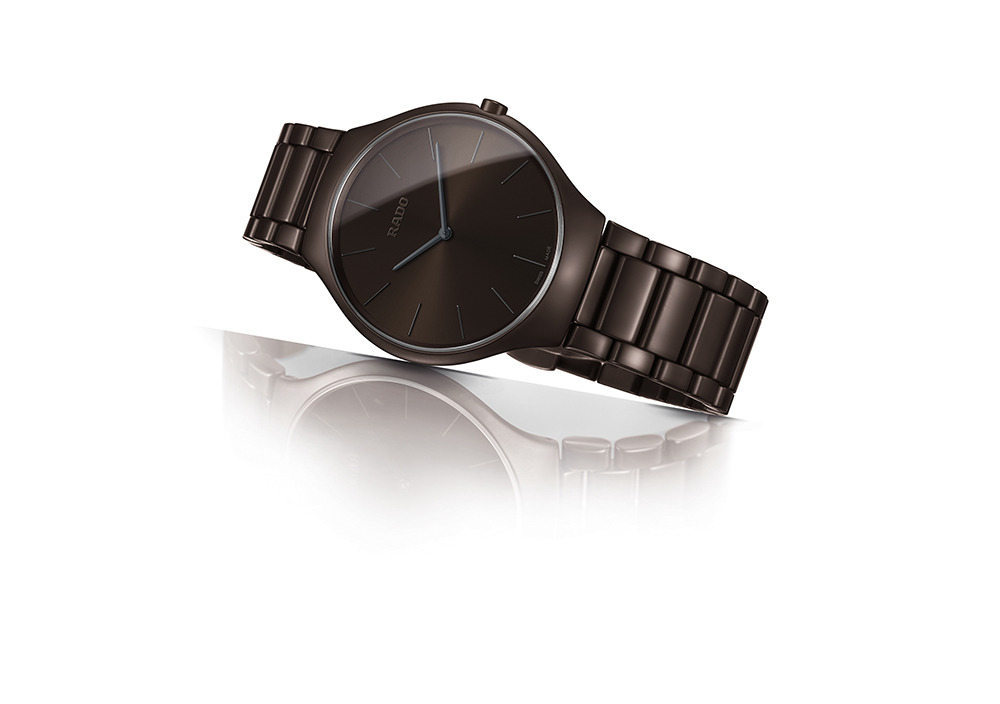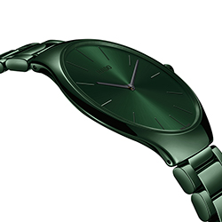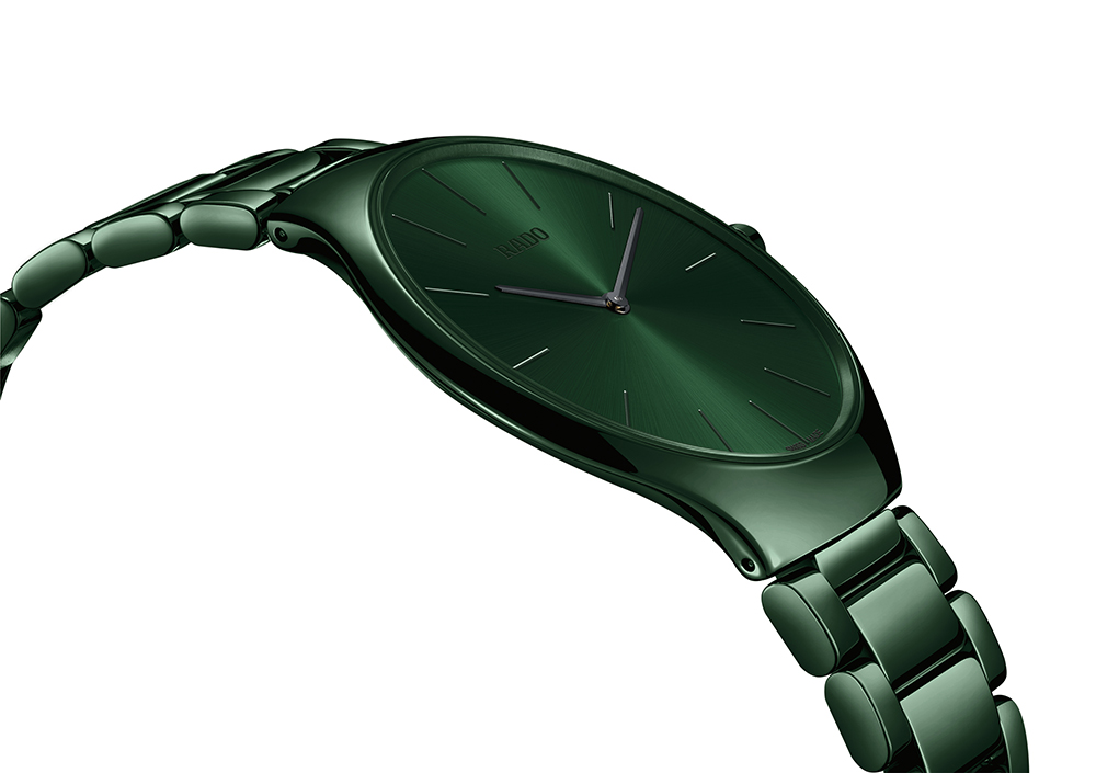 Эксперименты с цветом - заметная тенденция пары последних лет в Базеле. Швейцарская компания Rado подготовила в нынешнем году модель True Thinline Colours. Это ультратонкие часы, одним своим видом поражающие воображение. Их отличает оригинальная цветовая гамма — на выбор представлены часы, окрашенные в один из оттенков: пепельный, шоколадный, травянистый, синевато-чернильный.