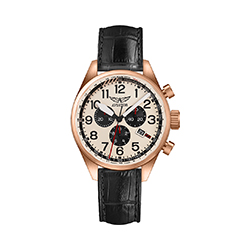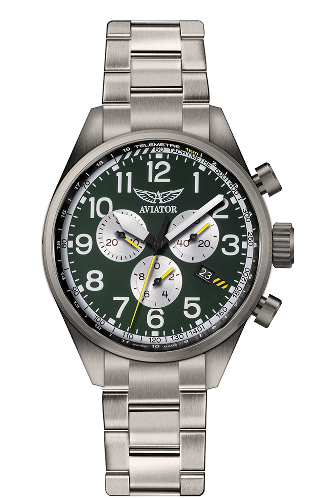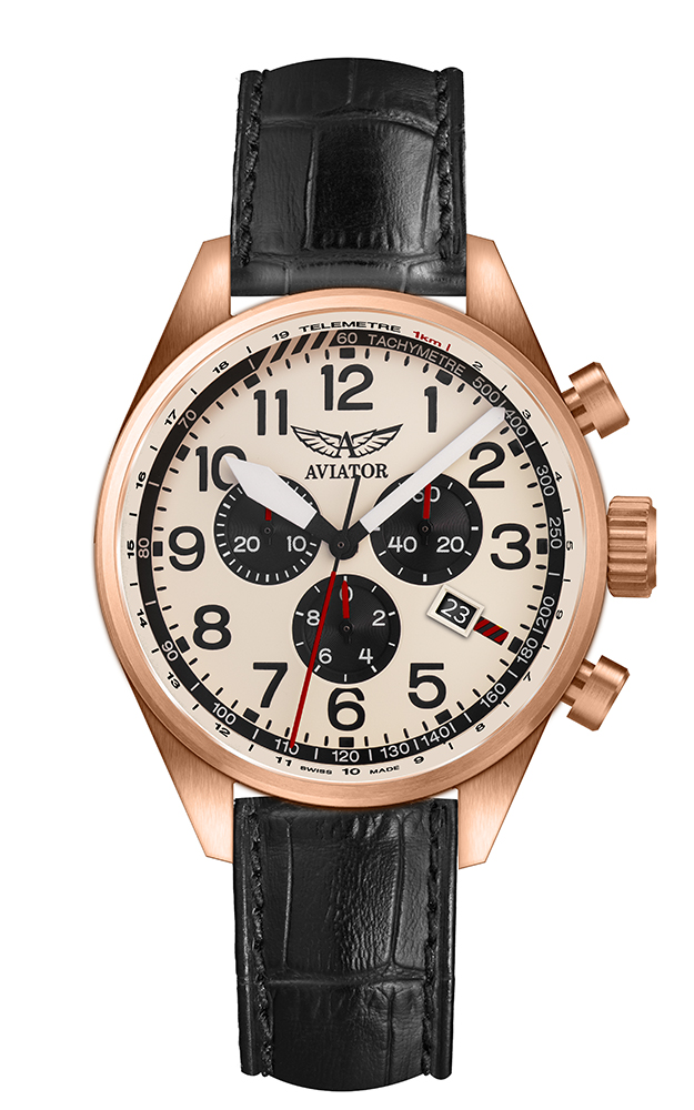Интересные сочетания были представлены у довольно молодого, но перспективного российского бренда Aviator (кстати, производятся часы в Швейцарии, в кантоне Юра). Airacobra P45 Chrono – эволюция коллекции Airacobra посвященная военным пилотам 1940-ых.