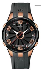 Эта модель привлечет внимание не только знатоков и давних почитателей, но и всех, кто ищет нестандартный хронометр. Tribune XL - часы с автоподзаводом (они заводятся от движения руки). Мощный запоминающийся корпус модели подчеркивает ее характер и достоинство. В прошлом году Tribune XL была выполнена в титане, в этом - в золоте. Вращающийся над циферблатом сдвоенный ротор притягивает взгляд своими внушительными размерами и двенадцатью отполированными, косо заостренными крутящимися лопастями.