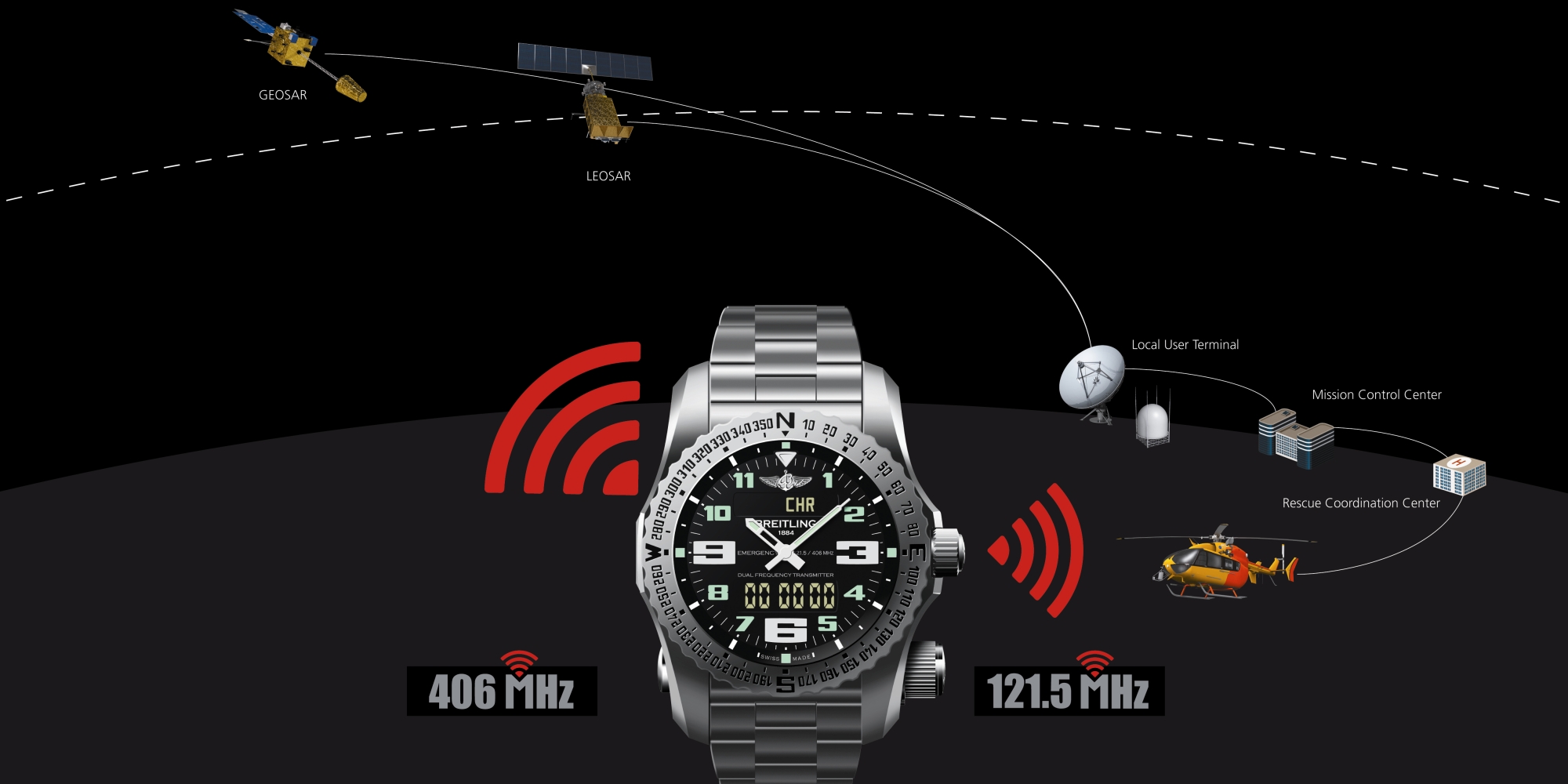 Компания «Breitling» первой в мире создала наручные часы, оснащённые уникальным двухчастотным радиолокационным маяком, тем самым подтвердив свои лидерские позиции в сферах хронометрии и электроники. Можно без преувеличения сказать, что часы «Emergency II» – это настоящее чудо миниатюризации высоких технологий. Этот прибор не имеет равных себе, среди всех передатчиков, относящихся к категории персональных радиолокационных маяков и полностью соответствующих характеристикам системы «Cospas-Sarsat». Emergency II – вершина разработок компании «Breitling», которые длились пять лет, и потребовали нестандартных решений, которые в дальнейшем способствовали развитию микроэлектроники и микротехники.