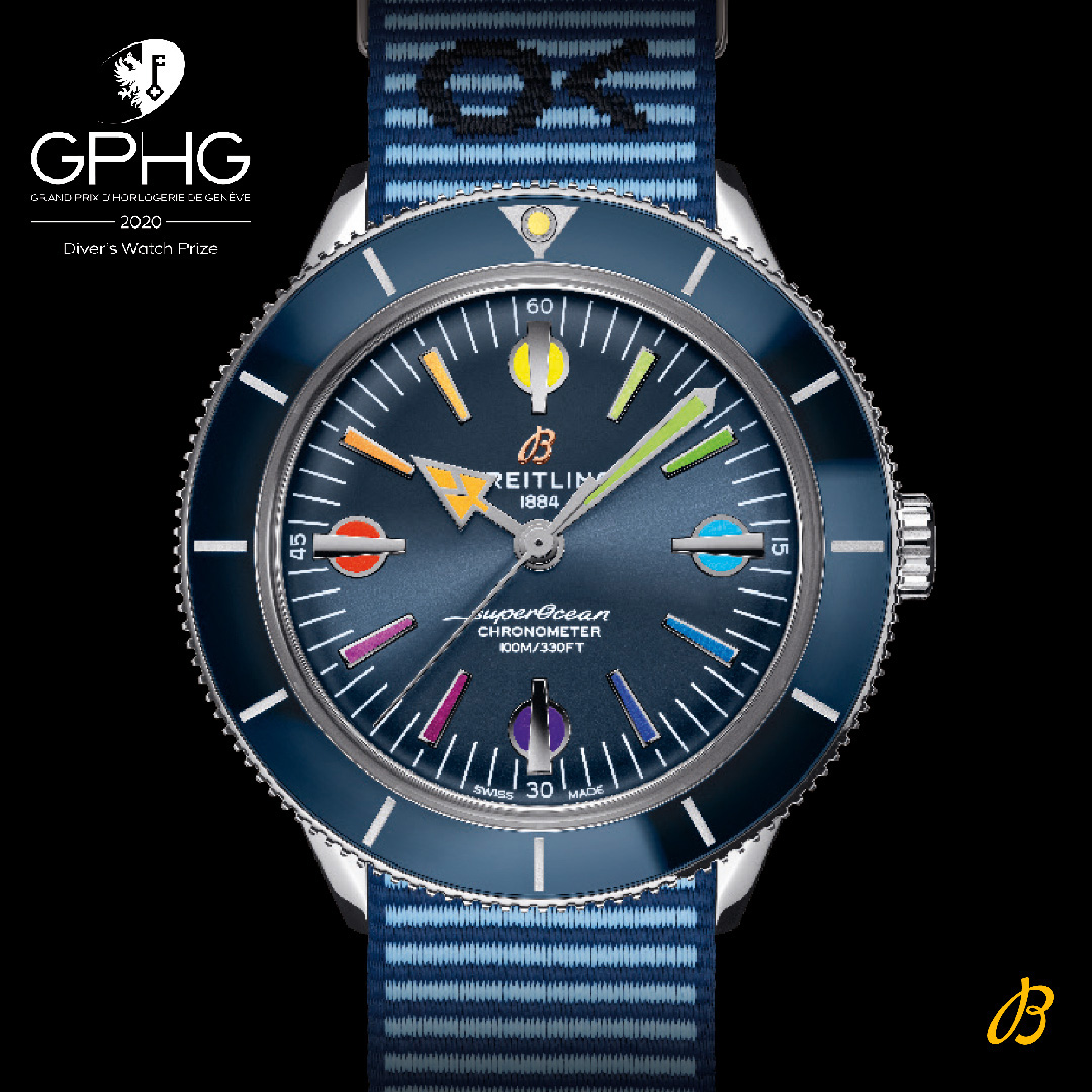 В апреле компания Breitling представила часы, которые стали объектом всеобщего внимания. Выпущенная в виде капсульной коллекции модель Superocean ’57 представлена во время первой в истории интернет-презентации бренда Summit Webcast, которая из-за пандемии и карантина транслировалась по всему миру через интернет. Зрители презентации увидели в радужных элементах дизайна символику надежды и оптимизма. Множество положительных отзывов побудили марку Breitling к выпуску второй серии, ограниченной 1000 экземплярами, с синим циферблатом. Часть выручки от продаж часов, общая сумма которой превысила 777 000$, передана в виде пожертвования благотворительным организациям, которые оказывают поддержку работникам здравоохранения в странах, особенно сильно пострадавших от эпидемии. Капсульная коллекция Superocean Heritage ’57 Limited Edition II послужила благой цели. Часовой производитель гордится, что эти часы, имеющие пронзительную историю, удостоились приза GPHG.