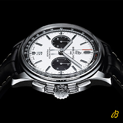 Характерной особенностью дизайна циферблата без излишних деталей являются контрастные черные дополнительные циферблаты с минутным хронографом в положении «3 часа» и небольшой секундный дополнительный циферблат в положении «9 часов», а также окно отображения даты в положении «6 часов». Каждая модель оснащена белой шкалой тахиметра на черном внутреннем безеле вокруг циферблата.