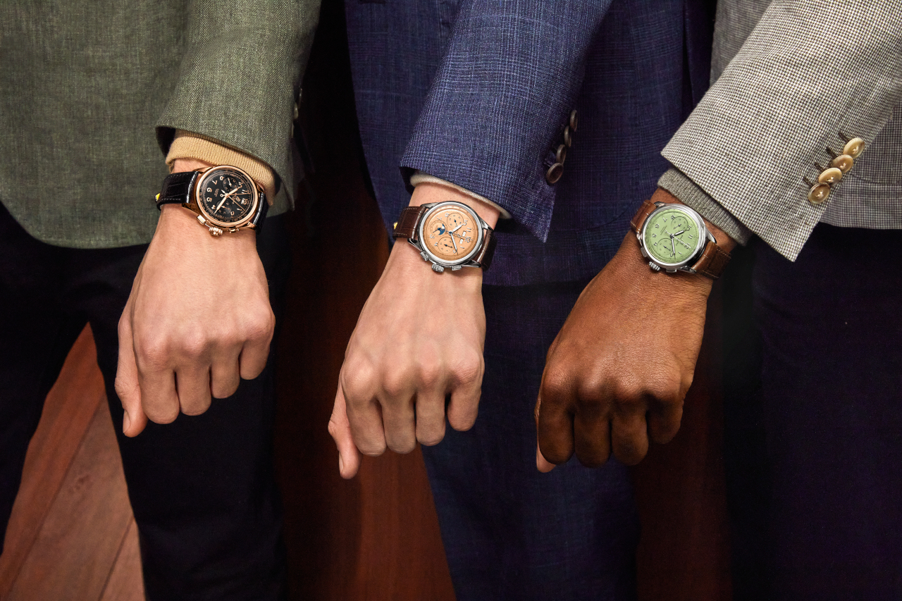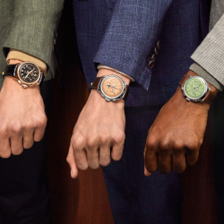 У всех моделей арабские цифры, винтажные стрелки и приглушенные глянцевые ремешки из кожи аллигатора с прострочкой тон в тон. Все часы сертифицированы Швейцарским институтом официального тестирования хронометров (COSC) и обладают водонепроницаемостью до 100 метров.