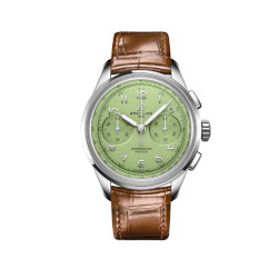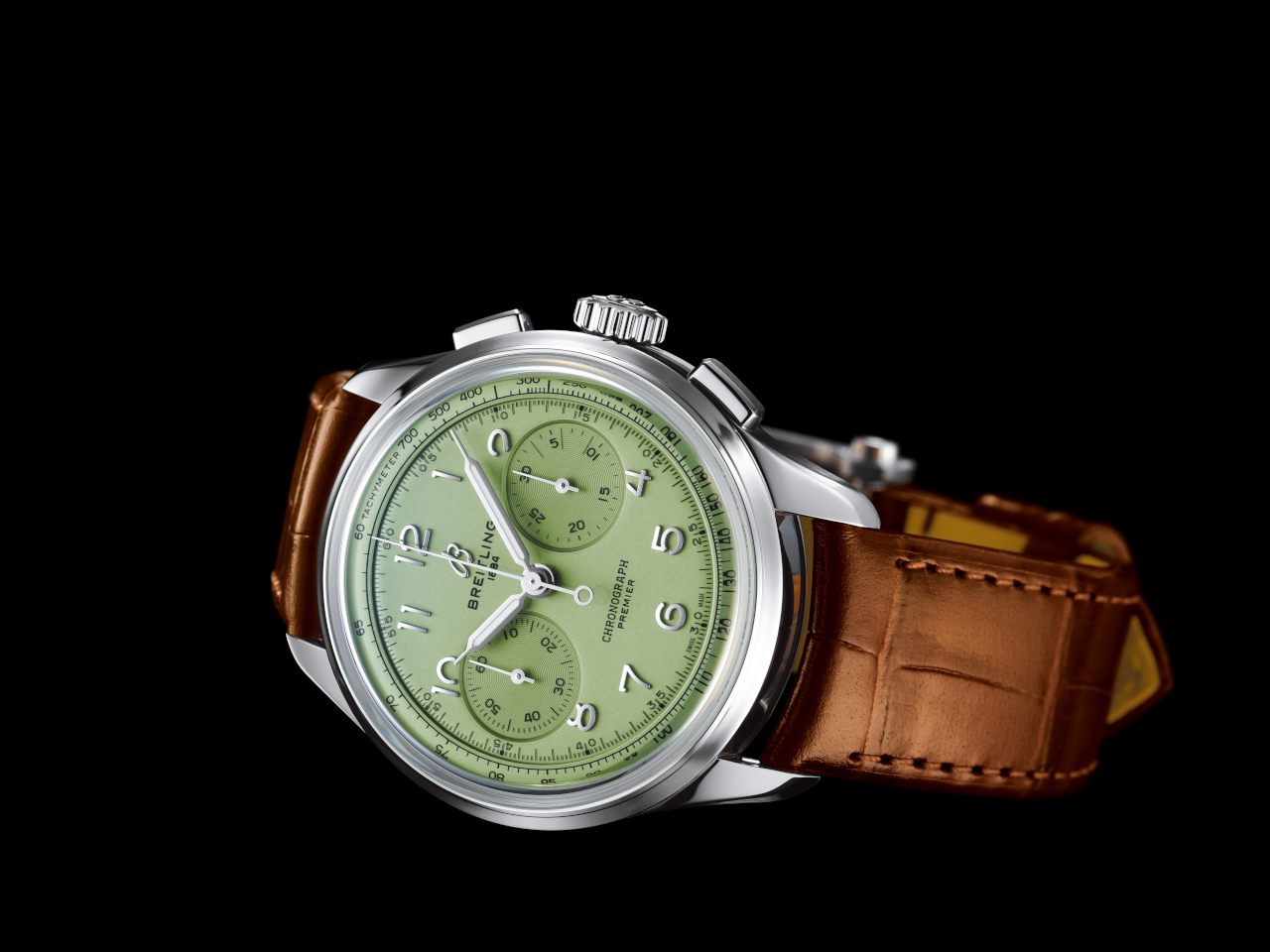 Модель Premier Heritage Chronograph в корпусе диаметром 40 мм обладает ручным подзаводом, как и ее предшественники, увидевшие свет в 40-х годах. Часы оснащены мануфактурным калибром Breitling B09, созданным на основе мануфактурного калибра Breitling 01. Эта модель выпускается в двух вариантах: с привлекательным фисташковым циферблатом в корпусе из нержавеющей стали или с роскошным серебристым циферблатом в корпусе из 18-каратного красного золота.