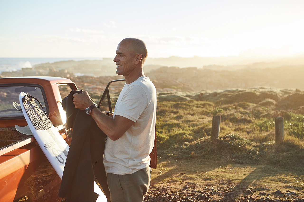 Келли Слейтер: «Жорж и его команда в Breitling разделяют нашу мечту о чистых океанах и пляжах. А создание часов с ремешками из материала ECONYL®, которые мы разработали совместно с Breitling, символизирует наше стремление к защите окружающей среды даже в условиях производства».