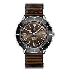 Часы Superocean Heritage ’57 Outerknown Limited Edition также обладают бронзовым циферблатом и коричневым ремешком NATO Outerknown из материала ECONYL®. Их вогнутый безель из 18-каратного розового золота, вращающийся в оба направления, эффектно смотрится на фоне черного керамического кольца. Эта модель выпущена ограниченным тиражом 500 экземпляров.