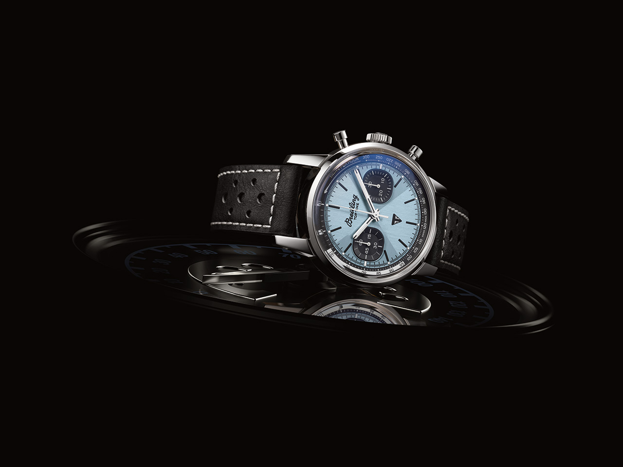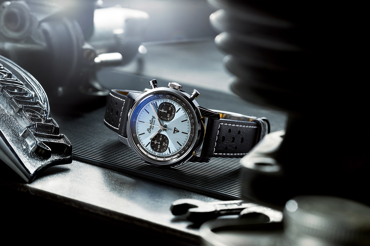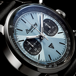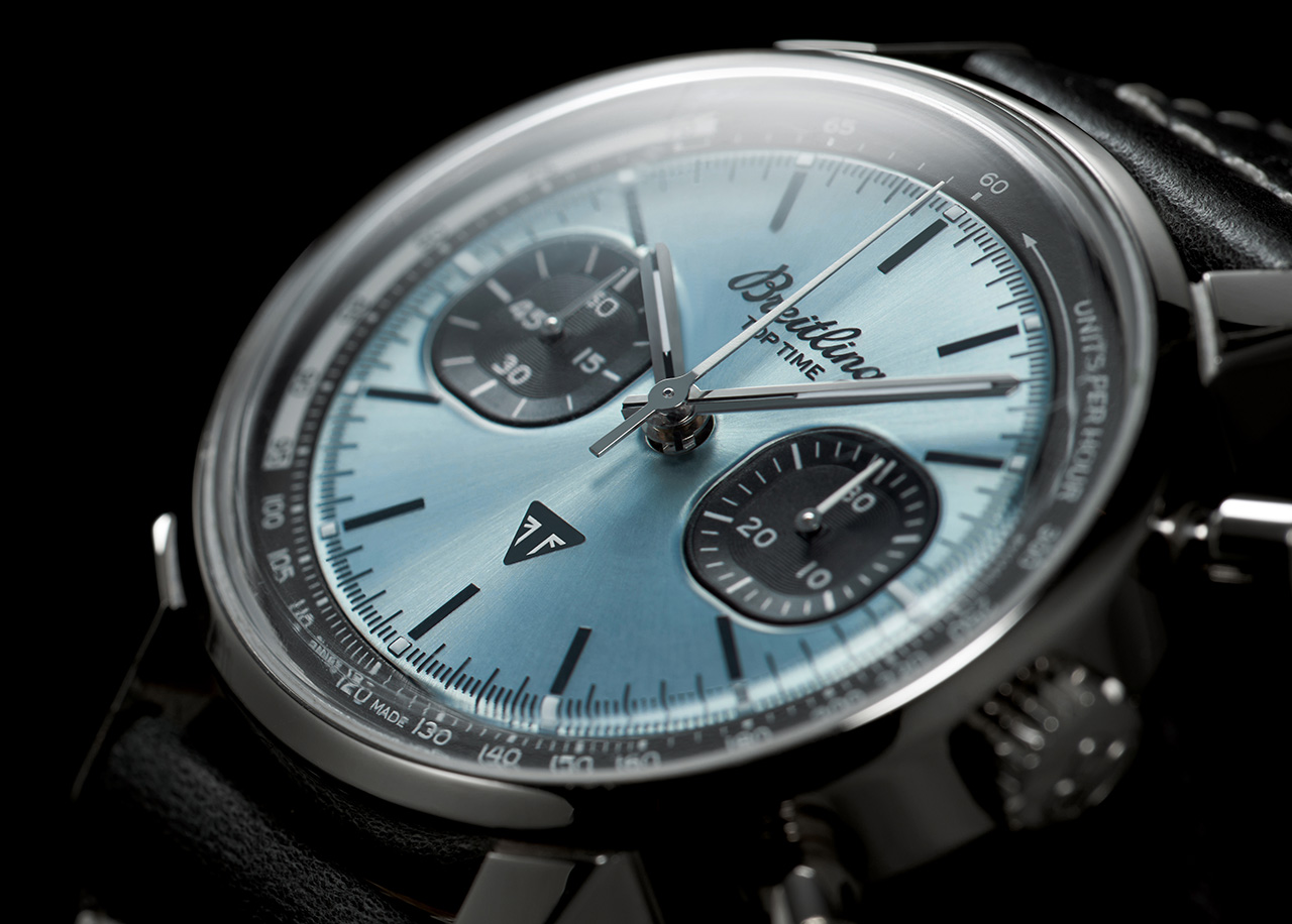 Обе версии часов отличаются светло-голубым цветом циферблата. Этот уникальный оттенок имеет два основных архивных образца: синий Triumph Thunderbird 6T 1951 года и редкий светло-голубой цвет часов Breitling Top Time Ref. 815, выпущенных в 70-е годы.