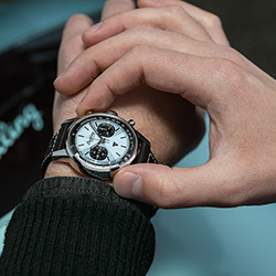 Цветовая гамма циферблатов хронографов Top Time созвучна с дизайном мотоцикла Triumph, увековеченного в легендарном фильме о байкерах «Дикарь» 1953 года.