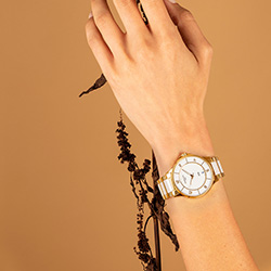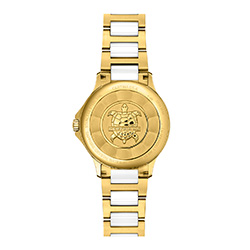 Ваше сердце будет биться чаще в любой день года благодаря классическому элегантному дизайну и теплому оттенку желтого золота модели DS-6 Lady. Корпус диаметром 35 мм из нержавеющей стали с PVD-покрытием с декоративной отделкой в виде сатинирования и полировки идеально располагается на запястье. Широкий безель расширяет белый или золотой циферблат модели. Шесть арабских цифр, утонченные стрелки и индексы, а также дата на отметке «6 часов» дополняют лаконичный дизайн. Часовая и минутная стрелки покрыты качественным люминесцентным составом Super-LumiNova®. Часы комплектуются браслетом из нержавеющей стали с PVD-покрытием. Белые керамические звенья добавляют модные акценты двухцветной версии модели.