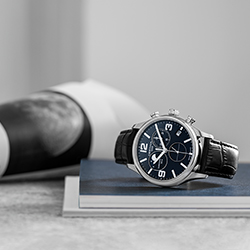 Круглый корпус из нержавеющей стали диаметром 42 мм задает стильный акцент благодаря сочетанию сатинированных и полированных поверхностей. Элегантность и ясность исполнения подчеркивает темно-синий циферблат с гильоше «Солнечные лучи». Также доступны варианты исполнения циферблата в темно-коричневом, черном или серебристом цветах. Дополнительное покрытие Super-LumiNova® на элегантных арабских цифрах и часовых отметках, а также на часовой и минутной стрелках улучшают считываемость показаний даже в темноте. Внешний вид модели дополняет ремешок из телячьей кожи с тиснением под крокодиловую кожу. Также доступны темно-коричневый кожаный ремешок или удобный стальной браслет из пяти рядов звеньев.