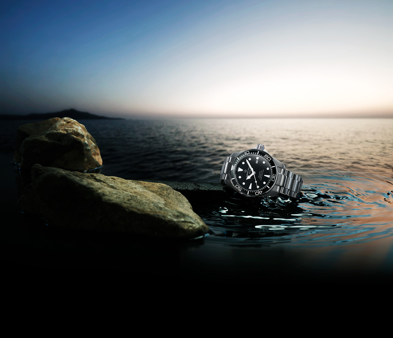- Однонаправленно вращающийся безель из черной керамики со шкалой для дайвинга и отметками с покрытием Super-LumiNova®.