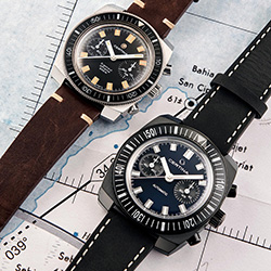 Эти часы, прототипом которых служит модель DS Chronograph Automatic 1968 года, носят легендарное имя. В конце 60-х годов часы DS Argonaut произвели фурор своим эффектным корпусом и потрясающе надежной сборкой. Вдохновившись легендарной моделью прошлых лет, швейцарские часовые мастера создали достойного преемника, который я прекрасно впишется в любую героическую сагу. Модель DS Chronograph Automatic 1968 имеет стальной корпус в форме подушки (43,5 x 43,5 мм) и покрыт черным PVD. Сапфировое стекло спереди и на задней крышке обеспечивает оптимальный обзор деталей и отличную считываемость показаний. Круглое сапфировое кольцо с черно-белой шкалой придает визуальную глубину однонаправленно вращающемуся безелю. А благодаря покрытию Super-LumiNova® скошенные под острым углом стрелки и часовые индексы четко выделяются на фоне черного циферблата даже в темноте.