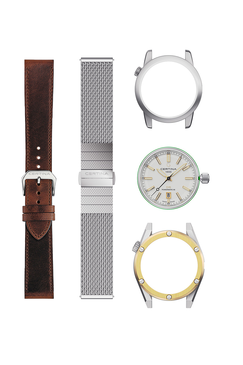 Секрет DS+ заключается в конструкции, состоящей из трех частей: модуля механизма с циферблатом, корпуса и ремешка. Каждый из трех элементов представляет собой самостоятельную единицу, которую можно по желанию комбинировать с двумя другими. Модуль механизма круглой формы, доступный с тремя вариантами циферблата, комбинируется с одним из шести корпусов из нержавеющей стали и надежно закрепляется с помощью заводной головки на корпусе. Инновационная прокладка из биоматериала обеспечивает идеальное уплотнение. Ушки, расположенные на корпусе, позволяют использовать систему быстрой замены Certina для крепления выбранного ремешка. Бутики Certina предлагают новую модель в виде трех комплектов, каждый из которых состоит из модуля механизма, двух корпусов и двух ремешков. Все составные части также можно приобрести отдельно.