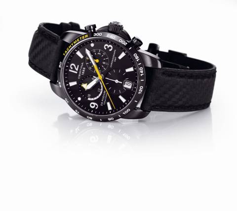 В ней появился хронограф DS PODIUM CHRONO GMT (Line extension) - очень эффектный, черный циферблат на черном карбоновом ремешке.