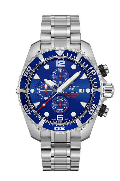 Называться поистине дайверскими часами достойны немногие наручные часы. Хронограф DS Action Diver от CERTINA как раз принадлежит к той когорте, которая заслужила носить это звание. Последняя версия модели полностью соответствует требованиям стандарта ISO 6425. Хронограф отличается яркими цветовыми решениями и может похвастаться водонепроницаемостью до 300 метров. Ультраспортивный дизайн делает его одним из самых известных дайверских хронографов, что достойно истинного потомка знаменитых часов CERTINA DS-3. Выбор в их пользу еще в 1970 году сделали военно-морские силы Австралии.