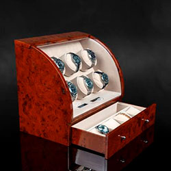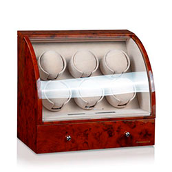Корпус из натурального шпона капового дерева (Burlwood) придаёт аксессуару изысканный вид, а отделка из велюра внутри обеспечивает бережное хранение коллекции. Благодаря шести независимым программируемым моторам, Watch Winder Basel 6 подходит для большинства автоматических калибров, обеспечивая точность и надёжность работы ваших часов.