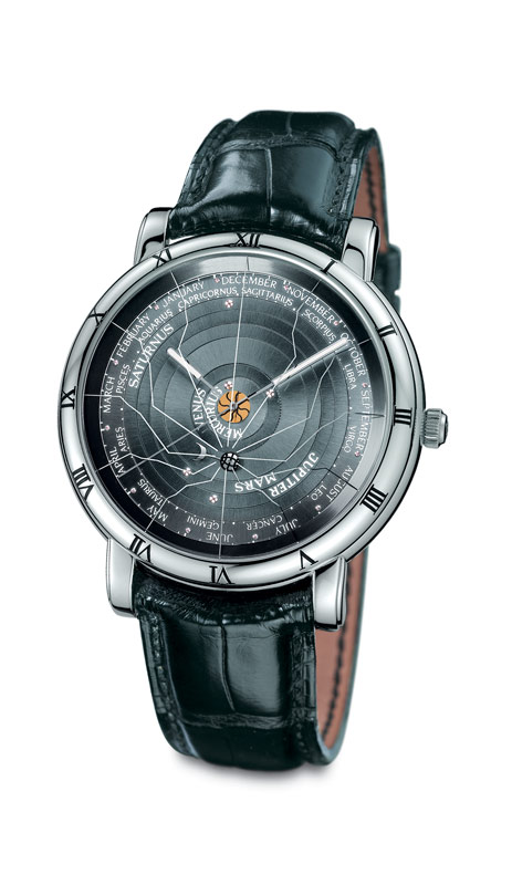 Но вернёмся к астрономическим часам. В 2009 году ULYSSE NARDIN представил инновационные часы Moonstrak с мануфактурным механизмом, детали которого выполнены из кремния. Эти часы показывают положение Солнца и Луны относительно Земли. В центре циферблата - изображение нашей планеты, которая выглядит так, как если бы мы могли смотреть на неё из космоса над Северным полюсом.