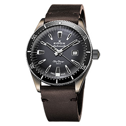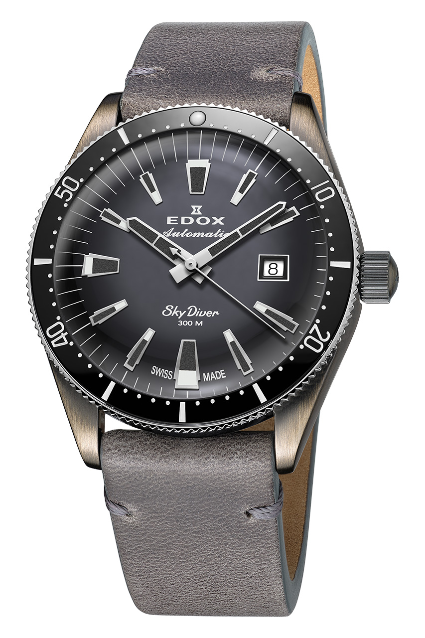 Еще одним «винтажным» штрихом является специальное покрытие, нанесенное на ремешок из серой кожи. Покрытие создает «складки» на ремешке – еще один ностальгический штрих. SkyDiver Date Automatic также поставляется с альтернативным ремешком из коричневой кожи, который можно легко заменить. Под капотом находится механизм с автоподзаводом Edox Calibre 80, изготовленный швейцарским специалистом Sellita, а внешний керамический безель, устойчивый к царапинам, обеспечивает практичный инструмент для расчета времени погружения на глубину до 300 метров ниже уровня моря.