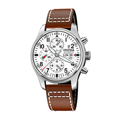 Линейка Swiss Made бренда Festina пополнилась механическими часами с автоподзаводом – хронографом F20150. Эти часы выполнены в традиционном дизайне пилотских часов с красной стрелкой.