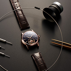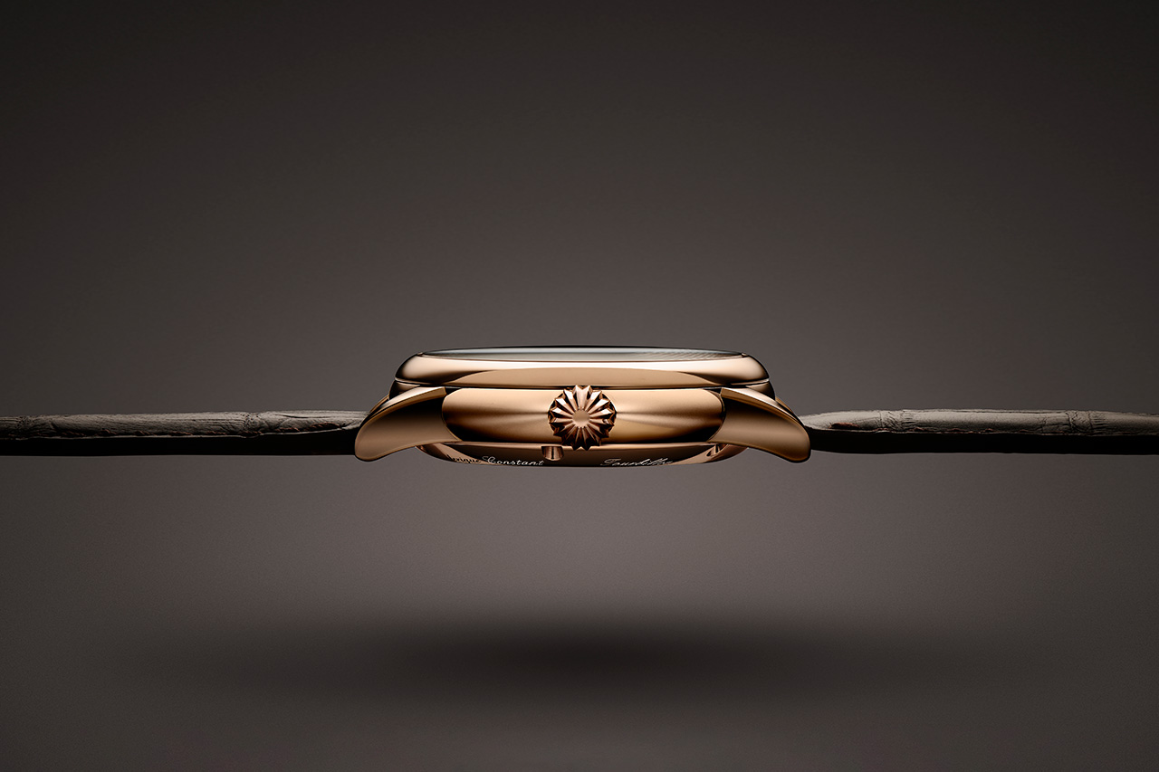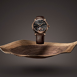Новая модель Classic Tourbillon Manufacture 2023года обладает более изысканным дизайном. Вместо апертуры турбийона в форме "запятой", характерной для этих модели с 2008 года, новая версия представляет собой идеальный круг. Лаконичность циферблата подчеркнута тщательно отполированными накладными индексами и золотыми стрелками. Тонкие и удлиненные, они словно парят над угольно-серым циферблатом, который украшен узором «солнечные лучи». Classic Tourbillon Manufacture 2023 года поставляются на темно-коричневом матовом кожаном ремешке с раскладывающейся застежкой, которая украшена гербом Frederique Constant.