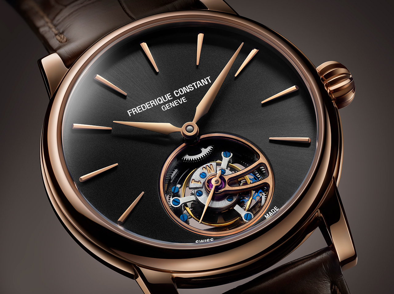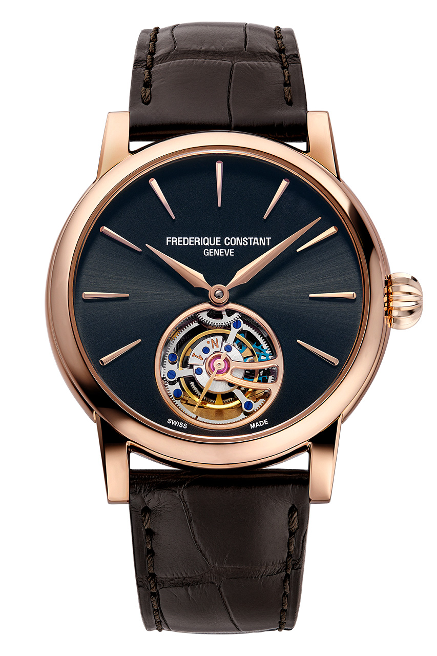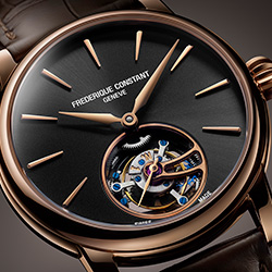 Дизайн Classic отражает традиционное швейцарское производство часовых механизмов, возведенное в главный принцип развития компании Frederique Constant. Турбийон в 39-мм корпусе из 18-каратного розового золота, выпущен ограниченной серией в 150 экземпляров. Турбийон величественно размещен в положении "6 часов" и является великолепным образцом высокого часового мастерства. Этот механизм, с кремниевым спусковым колесом и рычагом, обеспечивает высокую точность часов, нечувствительную к магнитным полям и перепадам температуры. Секундная стрелка, парящая над кареткой, состоит из 81 компонента. Она имеет индивидуальную гравировку с серийным номером каждого экземпляра. Механизм, с отделкой в лучших традициях часового искусства, обеспечивает запас хода 38 часов.
