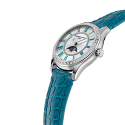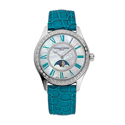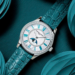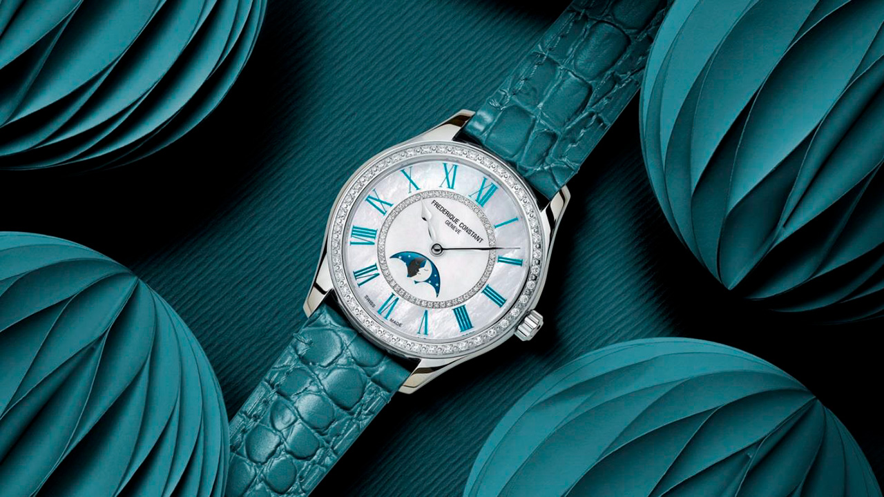 Frederique Constant представляет новую модель в коллекции Classics — Elegance Luna, тонкий и изысканный аксессуар, способный покорять романтическими деталями. Эта модель с уникальной фазой Луны — первая в истории марки, дизайн которой создан дочерью главы отдела исследований и разработок. Ее вдохновение передает романтический характер: на перламутровом циферблате, заключенном в стальной корпус диаметром 36 мм, изображены две половины луны, будто бы соединенные в нежном объятии.